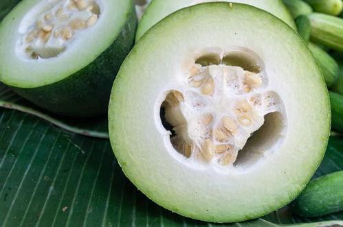 老梅瓜,又称绿宝瓜,是一种原产于我国的水果。它的外表光滑,呈绿色,上面点缀着几朵白色的小花,看起来清新脱俗。老梅瓜的果肉鲜嫩多汁,口感独特,含有丰富的维生素和矿物质,具有清热解暑、生津止渴的功效。